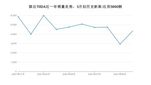 2021年10月,骐达TIIDA销量为4352辆,同比下降36.16%,环比增长48.63%。1-10月份,骐达TIIDA销量为46925辆,同比下降5.71%。在最近1年中,骐达TIIDA销量在2021年03月达到最高,销量为5990辆。