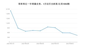 2021年10月,菲斯塔销量为422辆,同比下降82.5%,环比下降27.62%。1-10月份,菲斯塔销量为8492辆,同比下降76.45%。在最近1年中,菲斯塔销量在2021年01月达到最高,销量为1992辆。