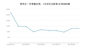 2021年10月,领界销量为1288辆,同比下降50.58%,环比增长0.78%。1-10月份,领界销量为13533辆,同比下降47.06%。在最近1年中,领界销量在2021年01月达到最高,销量为2681辆。