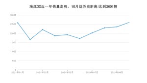 2021年10月,瑞虎3X销量为2601辆,同比增长30.7%,环比增长10.45%。1-10月份,瑞虎3X销量为21231辆,同比增长84.15%。在最近1年中,瑞虎3X销量在2021年10月达到最高,销量为2601辆。