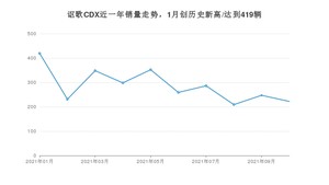 2021年10月,讴歌CDX销量为222辆,同比下降61.46%,环比下降10.12%。1-10月份,讴歌CDX销量为2871辆,同比下降35.1%。在最近1年中,讴歌CDX销量在2021年01月达到最高,销量为419辆。