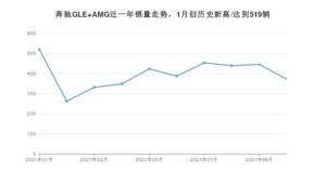 2021年10月,奔驰GLE AMG销量为372辆,同比增长304.35%,环比下降16.4%。1-10月份,奔驰GLE AMG销量为3979辆,同比增长102.6%。在最近1年中,奔驰GLE AMG销量在2021年01月达到最高,销量为519辆。