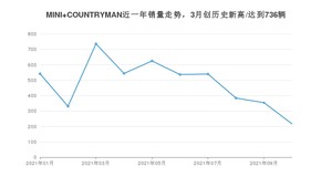2021年10月,MINI COUNTRYMAN销量为217辆,同比下降26.44%,环比下降38.7%。1-10月份,MINI COUNTRYMAN销量为4810辆,同比增长449.09%。在最近1年中,MINI COUNTRYMAN销量在2021年03月达到最高,销量为736辆。