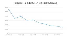 2021年10月,宝骏730销量为1427辆,同比下降66.2%,环比下降15.06%。1-10月份,宝骏730销量为28541辆,同比下降32.6%。在最近1年中,宝骏730销量在2021年01月达到最高,销量为5496辆。