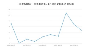 2021年10月,北京BJ90销量为23辆,同比下降46.51%,环比下降32.35%。1-10月份,北京BJ90销量为200辆,同比下降10.71%。在最近1年中,北京BJ90销量在2021年08月达到最高,销量为54辆。