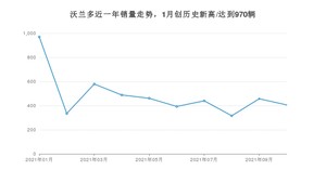 2021年10月,沃兰多销量为406辆,同比下降60.92%,环比下降11.16%。1-10月份,沃兰多销量为4845辆,同比下降52.96%。在最近1年中,沃兰多销量在2021年01月达到最高,销量为970辆。