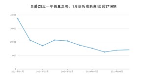 2021年10月,名爵ZS销量为1415辆,同比下降50.07%,环比增长1.95%。1-10月份,名爵ZS销量为19125辆,同比下降27.12%。在最近1年中,名爵ZS销量在2021年01月达到最高,销量为3716辆。