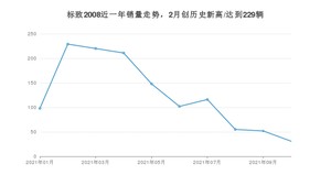 2021年10月,标致2008销量为31辆,同比下降47.46%,环比下降40.38%。1-10月份,标致2008销量为1262辆,同比增长155.47%。在最近1年中,标致2008销量在2021年02月达到最高,销量为229辆。