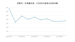 2021年10月,奕歌销量为369辆,同比下降51.64%,环比增长5.43%。1-10月份,奕歌销量为4240辆,同比下降47.96%。在最近1年中,奕歌销量在2021年01月达到最高,销量为672辆。