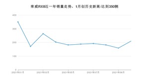 2021年10月,荣威RX8销量为210辆,同比下降43.7%,环比增长32.08%。1-10月份,荣威RX8销量为2101辆,同比下降46.89%。在最近1年中,荣威RX8销量在2021年01月达到最高,销量为350辆。
