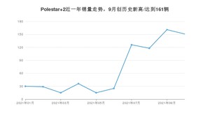 2021年10月,Polestar 2销量为151辆,同比增长331.43%,环比下降6.21%。1-10月份,Polestar 2销量为706辆,同比增长333.13%。在最近1年中,Polestar 2销量在2021年09月达到最高,销量为161辆。