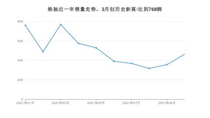 2021年10月,焕驰销量为463辆,同比下降40.03%,环比增长30.06%。1-10月份,焕驰销量为5016辆,同比下降49.28%。在最近1年中,焕驰销量在2021年03月达到最高,销量为768辆。