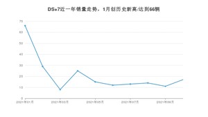 2021年10月,DS 7销量为17辆,同比增长54.55%,环比增长54.55%。1-10月份,DS 7销量为210辆,同比持平。在最近1年中,DS 7销量在2021年01月达到最高,销量为66辆。