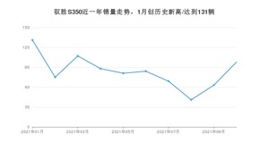 2021年10月,驭胜S350销量为98辆,环比增长55.56%。1-10月份,驭胜S350销量为837辆,在最近1年中,驭胜S350销量在2021年01月达到最高,销量为131辆。