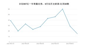 2021年10月,合创007销量为15辆,同比下降73.68%,环比下降48.28%。1-10月份,合创007销量为336辆,同比增长11.63%。在最近1年中,合创007销量在2021年08月达到最高,销量为60辆。