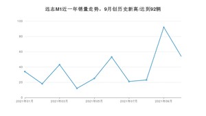 2021年10月,远志M1销量为54辆,同比增长285.71%,环比下降41.3%。1-10月份,远志M1销量为375辆,同比增长80.29%。在最近1年中,远志M1销量在2021年09月达到最高,销量为92辆。