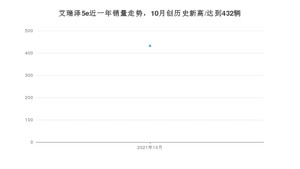 2021年10月,艾瑞泽5e销量为432辆,1-10月份,艾瑞泽5e销量为432辆,在最近1年中,艾瑞泽5e销量在2021年10月达到最高,销量为432辆。