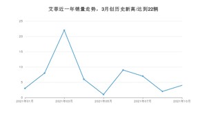2021年10月,艾菲销量为4辆,同比下降33.33%,环比增长100%。1-10月份,艾菲销量为62辆,同比下降23.46%。在最近1年中,艾菲销量在2021年03月达到最高,销量为22辆。