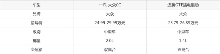 一汽-大众CC和迈腾GTE插电混动配置对比