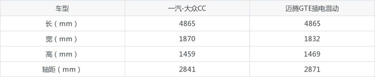 一汽-大众CC和迈腾GTE插电混动车身尺寸对比