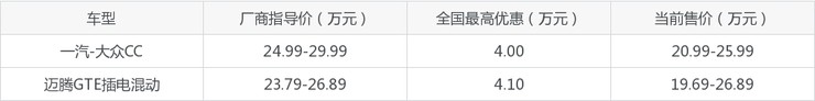 一汽-大众CC和迈腾GTE插电混动优惠对比