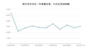 2021年11月,郴州市汽车总销量为3058辆,同比下降2.55%,环比增长9.41%。1-11月份,郴州市总销量为34120辆,同比增长10.35%。在最近1年中,郴州市销量在2021年01月达到最高,销量为5295辆。