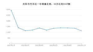 11月庆阳市汽车销量在全国占比0.06%,位列第253名