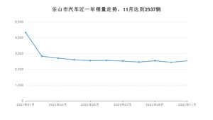 2021年11月,乐山市汽车总销量为2537辆,同比下降22.75%,环比增长3.98%。1-11月份,乐山市总销量为30057辆,同比下降0.27%。在最近1年中,乐山市销量在2021年01月达到最高,销量为4321辆。