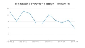 2021年11月,阿坝藏族羌族自治州汽车总销量为57辆,同比下降24%,环比下降40.63%。1-11月份,阿坝藏族羌族自治州总销量为1107辆,同比下降12.35%。在最近1年中,阿坝藏族羌族自治州销量在2021年03月达到最高,销量为138辆。