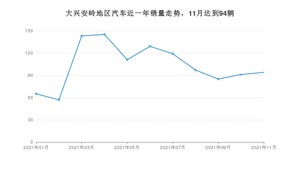 2021年11月,大兴安岭地区汽车总销量为94辆,同比增长1.08%,环比增长3.3%。1-11月份,大兴安岭地区总销量为1136辆,同比增长19.2%。在最近1年中,大兴安岭地区销量在2021年04月达到最高,销量为145辆。