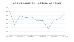 2021年11月,博尔塔拉蒙古自治州汽车总销量为558辆,同比增长1.45%,环比增长33.49%。1-11月份,博尔塔拉蒙古自治州总销量为4606辆,同比增长27.38%。在最近1年中,博尔塔拉蒙古自治州销量在2021年01月达到最高,销量为648辆。
