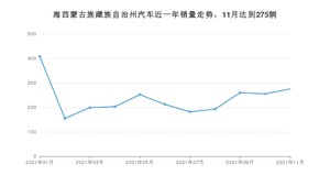 2021年11月,海西蒙古族藏族自治州汽车总销量为275辆,同比下降16.92%,环比增长7.84%。1-11月份,海西蒙古族藏族自治州总销量为2594辆,同比下降13.07%。在最近1年中,海西蒙古族藏族自治州销量在2021年01月达到最高,销量为408辆。