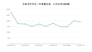2021年11月,玉溪市汽车总销量为1892辆,同比下降7.8%,环比下降5.82%。1-11月份,玉溪市总销量为19633辆,同比增长2.45%。在最近1年中,玉溪市销量在2021年01月达到最高,销量为2727辆。