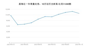 2021年11月,星瑞销量为10517辆,同比增长103.46%,环比下降6.43%。1-11月份,星瑞销量为100113辆,同比增长1%。在最近1年中,星瑞销量在2021年10月达到最高,销量为11240辆。