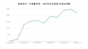 2021年11月,航海家销量为2171辆,环比下降12.11%。1-11月份,航海家销量为16859辆,在最近1年中,航海家销量在2021年10月达到最高,销量为2470辆。