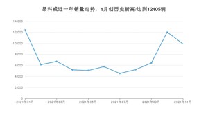 2021年11月,昂科威销量为9895辆,同比下降6.56%,环比下降17.85%。1-11月份,昂科威销量为79411辆,同比下降14.47%。在最近1年中,昂科威销量在2021年01月达到最高,销量为12405辆。