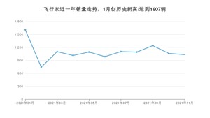 2021年11月,飞行家销量为1031辆,同比下降20.69%,环比下降2.83%。1-11月份,飞行家销量为12066辆,同比增长115.7%。在最近1年中,飞行家销量在2021年01月达到最高,销量为1607辆。