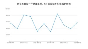 2021年11月,欧拉黑猫销量为5818辆,同比下降28.46%,环比增长50.34%。1-11月份,欧拉黑猫销量为59828辆,同比增长69.3%。在最近1年中,欧拉黑猫销量在2021年08月达到最高,销量为8459辆。