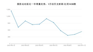2021年11月,揽胜运动版销量为535辆,同比下降56.65%,环比增长31.13%。1-11月份,揽胜运动版销量为8748辆,同比下降6.62%。在最近1年中,揽胜运动版销量在2021年01月达到最高,销量为1436辆。