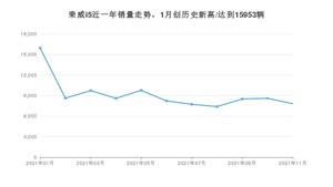2021年11月,荣威i5销量为7811辆,同比下降33.74%,环比下降9.27%。1-11月份,荣威i5销量为100986辆,同比增长3.16%。在最近1年中,荣威i5销量在2021年01月达到最高,销量为15953辆。