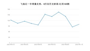 2021年11月,飞驰销量为100辆,同比下降21.88%,环比增长17.65%。1-11月份,飞驰销量为1329辆,同比增长116.8%。在最近1年中,飞驰销量在2021年08月达到最高,销量为165辆。