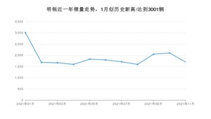 2021年11月,明锐销量为1694辆,同比下降24.78%,环比下降19.45%。1-11月份,明锐销量为20704辆,同比下降30.95%。在最近1年中,明锐销量在2021年01月达到最高,销量为3001辆。