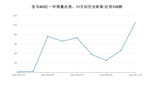 2021年11月,宝马品牌总体销量达到61509辆,其中宝马M3销量达到106辆,占品牌总销量的0.17%。