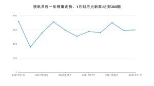 2021年11月,领航员销量为299辆,同比下降1.64%,环比增长1.36%。1-11月份,领航员销量为3234辆,同比增长34.81%。在最近1年中,领航员销量在2021年01月达到最高,销量为360辆。