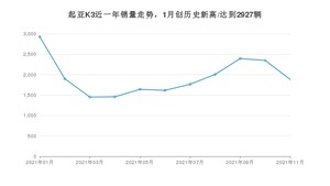 2021年11月,起亚K3销量为1884辆,同比下降28.37%,环比下降19.8%。1-11月份,起亚K3销量为21394辆,同比下降26.99%。在最近1年中,起亚K3销量在2021年01月达到最高,销量为2927辆。