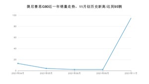 2021年11月,捷尼赛思G80销量为95辆,1-11月份,捷尼赛思G80销量为116辆,在最近1年中,捷尼赛思G80销量在2021年11月达到最高,销量为95辆。