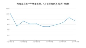 2021年11月,柯迪亚克销量为731辆,同比下降40.38%,环比下降15.59%。1-11月份,柯迪亚克销量为7438辆,同比下降50.21%。在最近1年中,柯迪亚克销量在2021年01月达到最高,销量为1006辆。