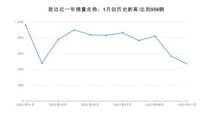 2021年11月,胜达销量为466辆,同比下降59.62%,环比下降17.67%。1-11月份,胜达销量为8243辆,同比下降17.33%。在最近1年中,胜达销量在2021年01月达到最高,销量为956辆。
