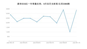 2021年11月,蔚来EC6销量为3390辆,同比增长132.19%,环比增长237.99%。1-11月份,蔚来EC6销量为27154辆,同比增长1%。在最近1年中,蔚来EC6销量在2021年09月达到最高,销量为3396辆。