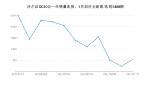 2021年11月,沃尔沃XC40销量为535辆,同比下降75.53%,环比增长129.61%。1-11月份,沃尔沃XC40销量为15795辆,同比下降23.38%。在最近1年中,沃尔沃XC40销量在2021年01月达到最高,销量为2488辆。